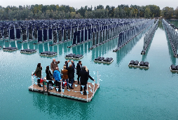 Floating-PV weitergedacht: Erste senkrecht installierte Photovoltaikanlage auf Baggersee in Betrieb