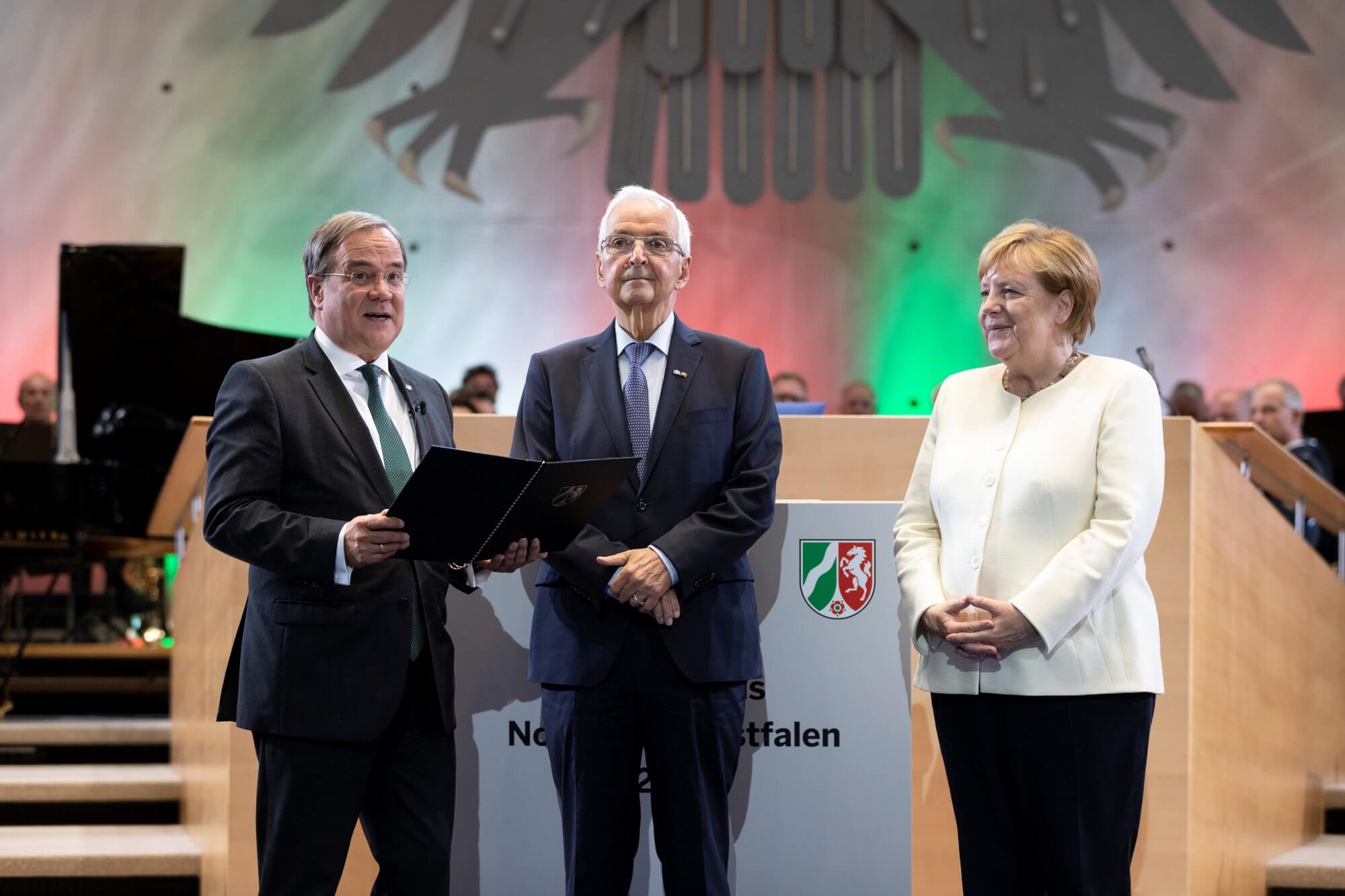 Düsseldorf - Prof. Dr. Klaus Töpfer wurde von NRW-Ministerpräsident Armin Laschet mit dem Staatspreis des Landes Nordrhein-Westfalen ausgezeichnet. Der frühere Bundesminister, Exekutivdirektor des Umweltprogramms der Vereinten Nationen (UNEP) und Unter-Generalsekretär der Vereinten Nationen wird damit geehrt für sein jahrzehntelanges herausragendes Engagement zur Bewahrung der Schöpfung, in Anerkennung seiner internationalen Verdienste für den Umwelt- und Naturschutz und eine globale nachhaltige Entwicklung sowie für seine Verdienste um sein Heimatland Nordrhein-Westfalen.